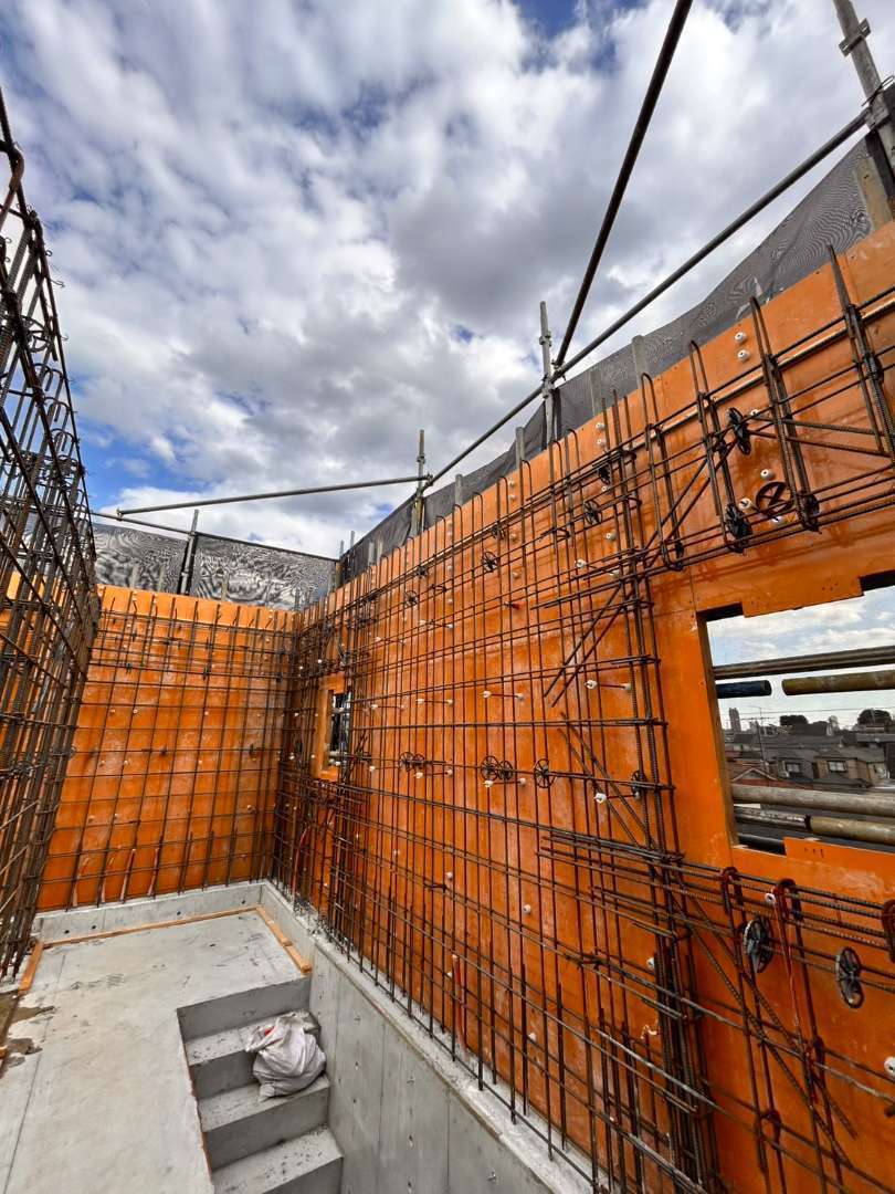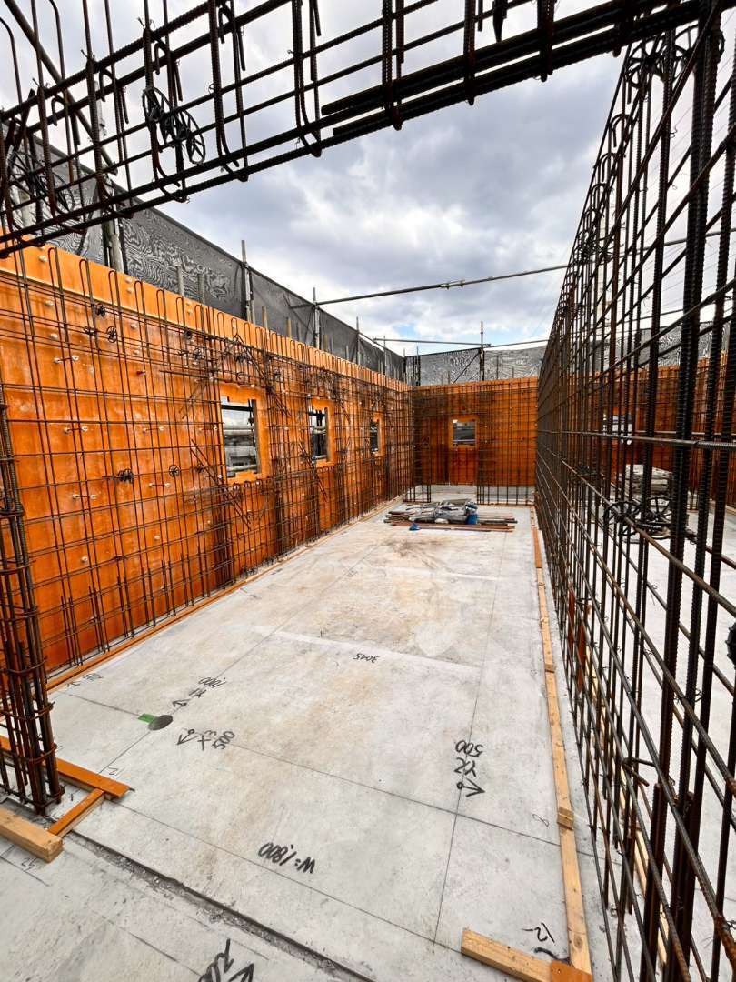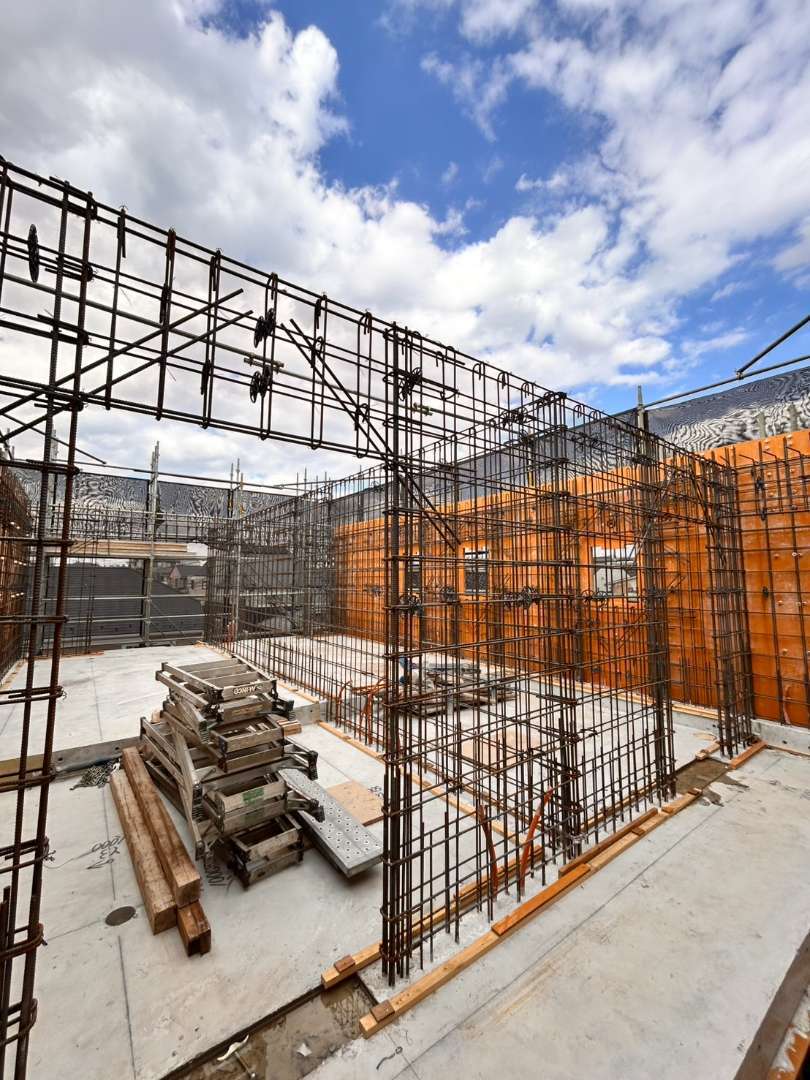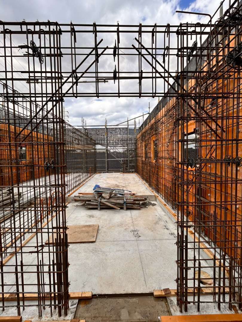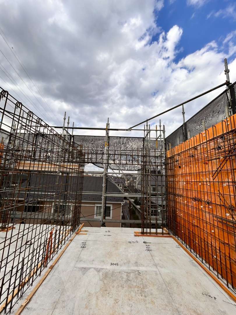 今回の施工では、建物の耐久性と安全性を確保するため、鉄筋の配筋精度に細心の注意を払いながら作業を進めています。構造図に基づいた鉄筋配置の確認や、各箇所の寸法・位置取りを徹底し、長期にわたり安心してご利用いただける住環境づくりに貢献いたしました。