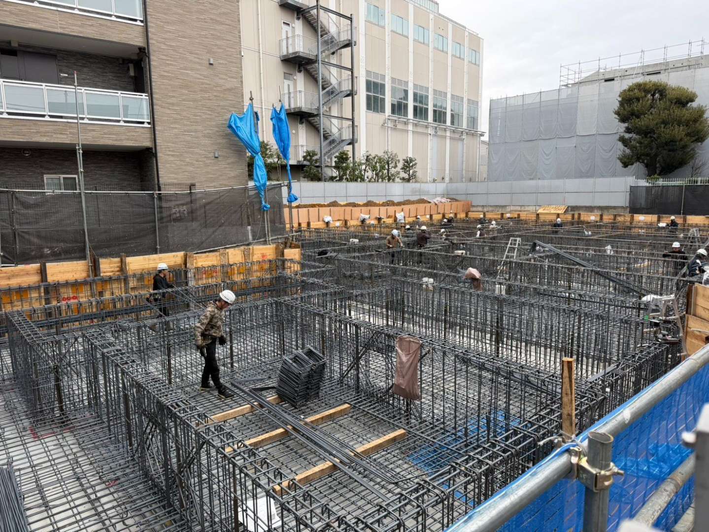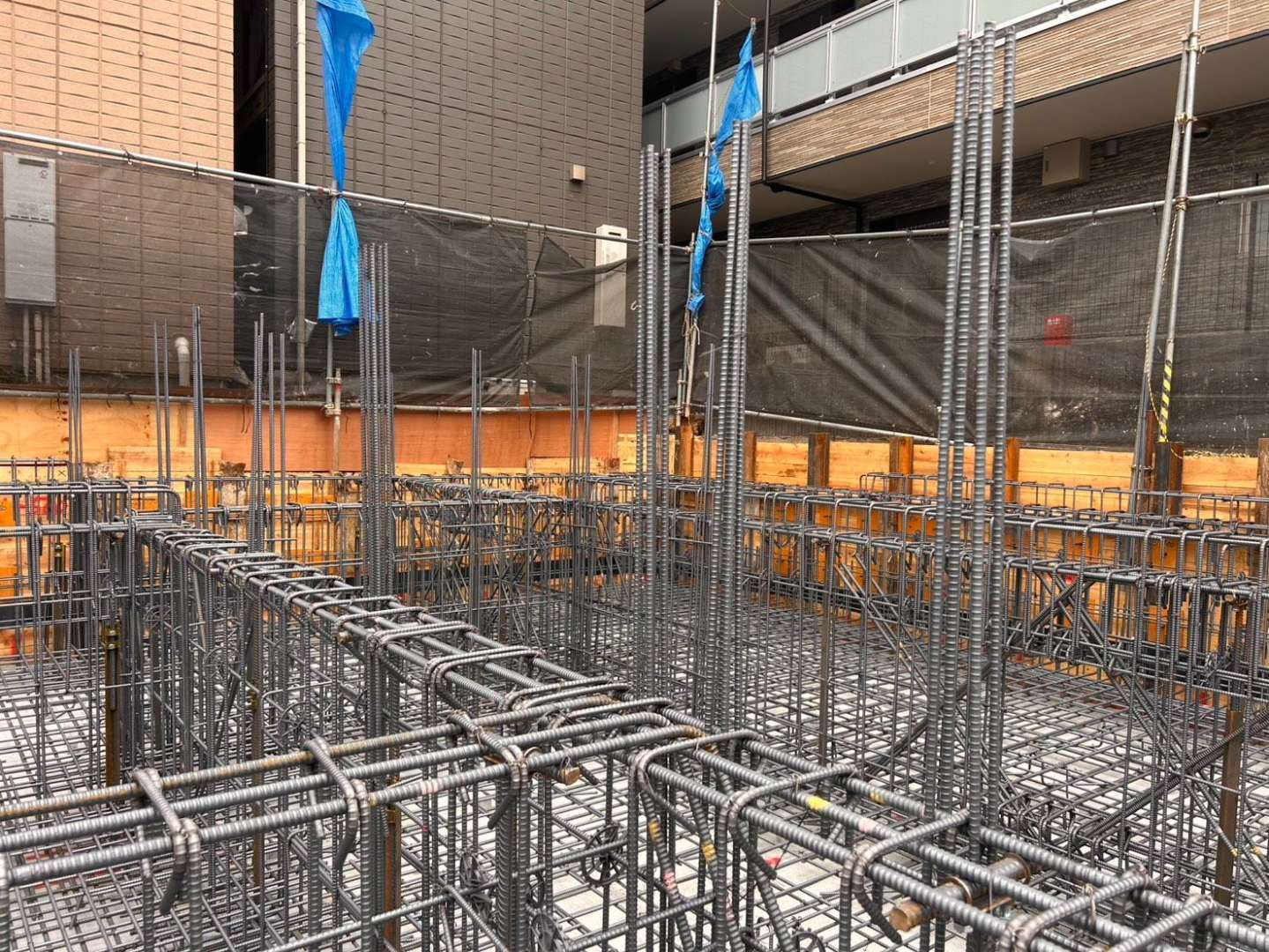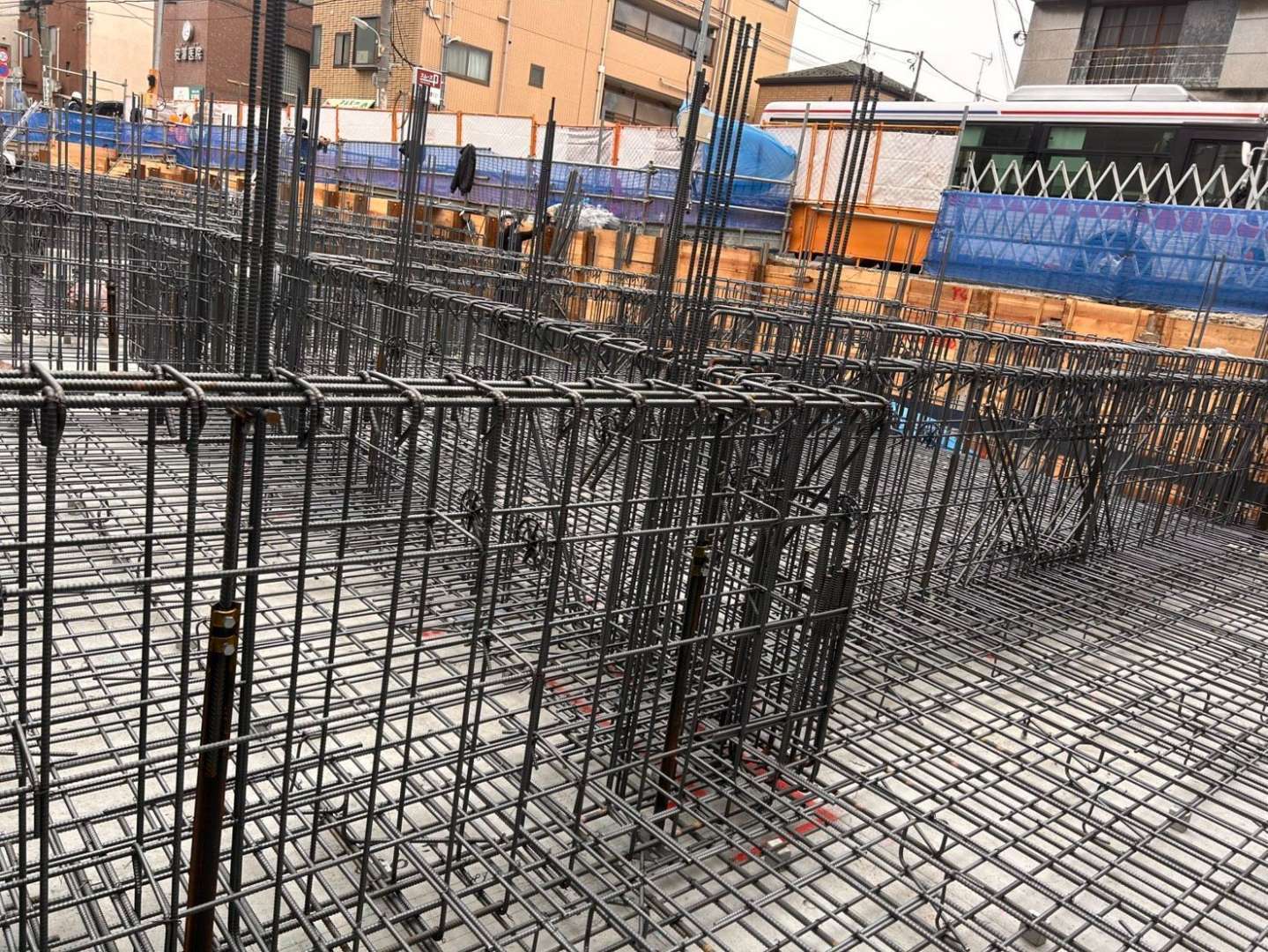 東京都品川区大井5丁目 新築計画D棟 マンション 壁式構造(WRC) 4階建て 基礎配筋 鉄筋工事