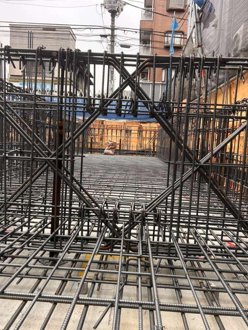 品川区大井5丁目新築計画D棟マンションの(壁式構造(WRC) 4階建て)基礎配筋工事を行いました。