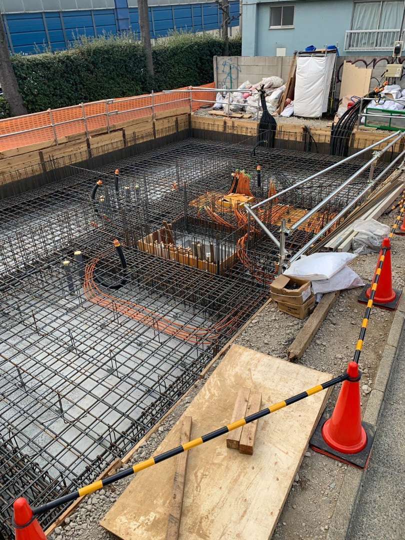 東京都杉並区高井戸の新築マンション で(壁式構造(WRC)5階建て)で基礎配筋工事を行いました。